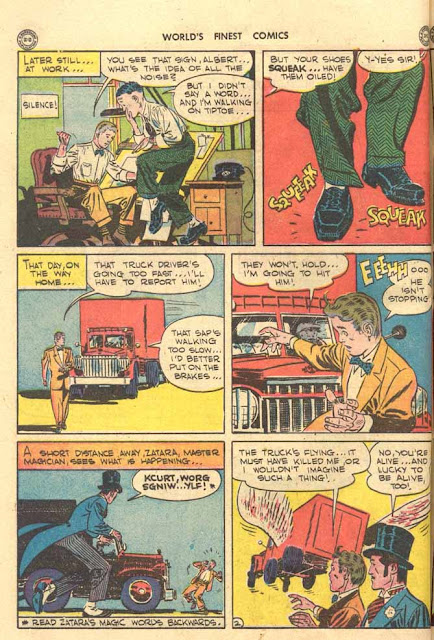 By this point, the BOY COMMANDOS stories are a little stale. Good SUPERMAN and ZATARA stories this time out, the latter seen here in its entirety with early art by the late, great Joe Kubert! Plus DOC AND FATTY are back by Howard Sherman. They're starting to grow on me.
